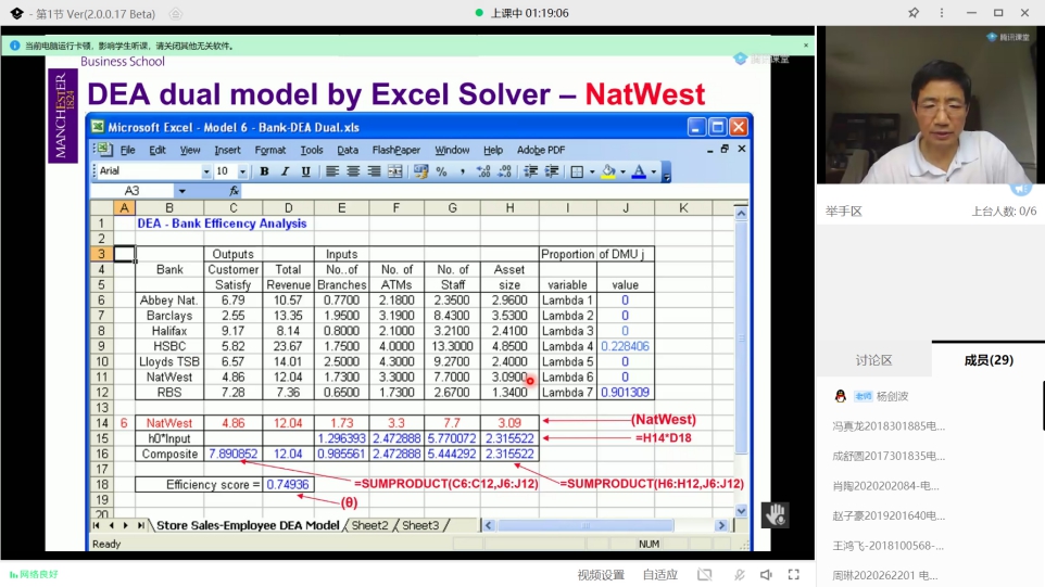 受WilliamHill体育蒋雯教授、邓鑫洋副教授邀请,英国曼彻斯特大学商公司决策与认知科学研究中心主任Jian-Bo Yang教授于2020年8月21日至2020年8月28日在公司举办的“暑期国际学堂”活动中,在线讲授了“Risk, Performance and Decision Analysis / 风险,绩效与决策分析”课程。公司包括本科生、硕士生、博士生在内的30余名员工参加了该课程的学习。