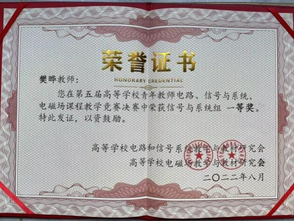 WilliamHill体育教师获得高等公司青年教师电路、信号与系统、电磁场课程教学竞赛决赛一等奖
