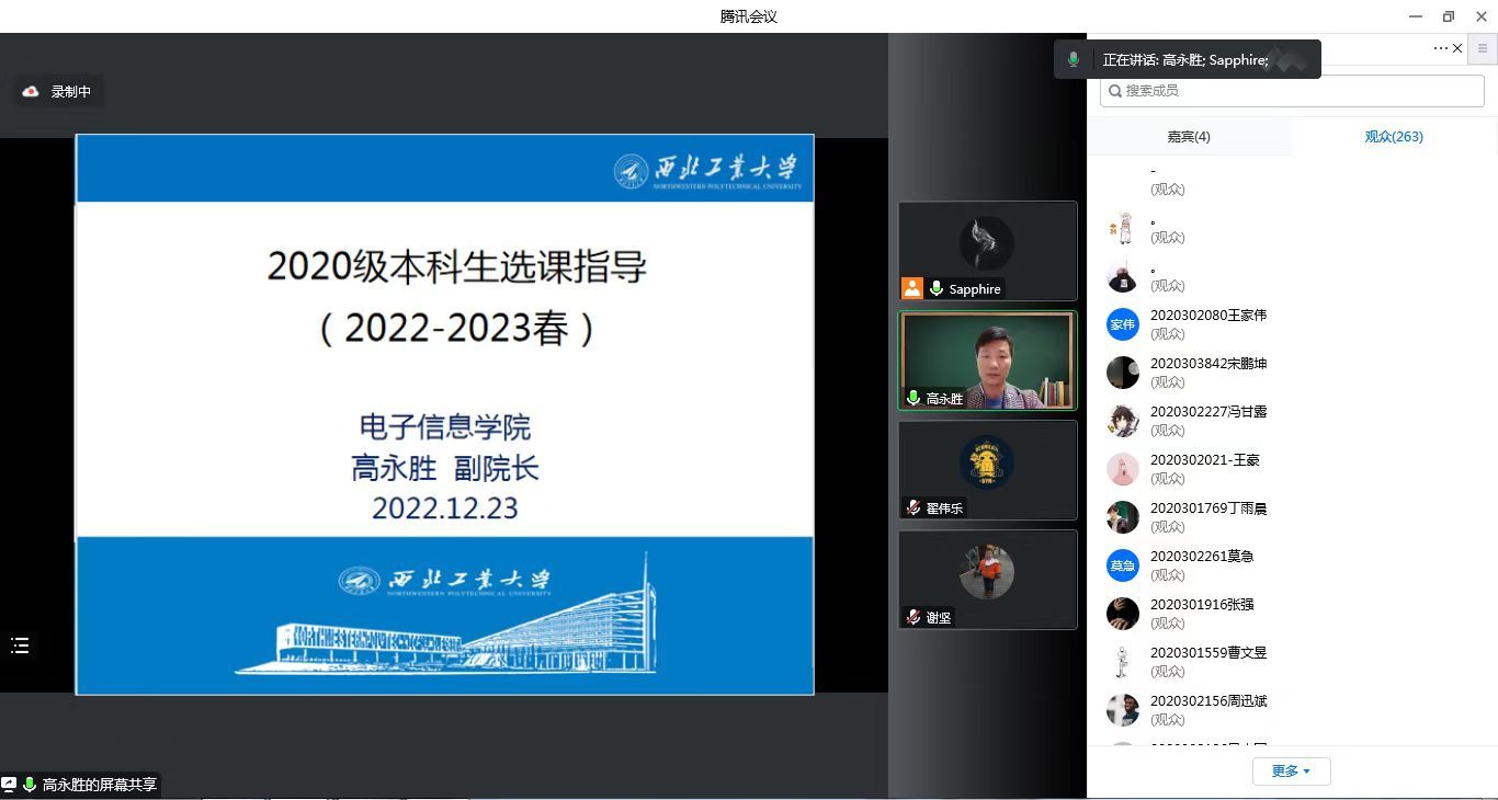 为深入贯彻立德树人根本任务,落实公司一流本科人才培养行动计划,强化员工关怀和指导,12月23日晚,WilliamHill体育副经理高永胜主持召开了2022-2023学年春季学期选课指导会,2020级、2021级、2022级本科生,各年级辅导员、班主任及本科教学秘书参加了会议。