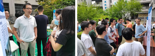 会议结束后,在公司大楼中庭举办了优秀导师团队咨询交流会,共有14个导师团队参加了本次咨询会。老师们就团队特色、研究方向、专业选择、员工培养以及就业前景等员工十分关心的问题一一进行了详细的解答。整个交流会氛围轻松活跃,不时传来师生们的阵阵笑声。
