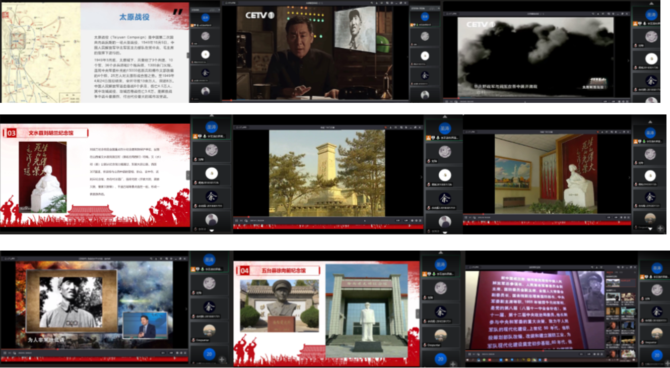 同学们在大概了解了山西省在抗战中的重要地位与历史贡献之后,我们通过线上VR的形式带领实践队员们参观了太原解放纪念馆、文水县刘胡兰纪念馆和五台县徐向前纪念馆。通过讲解员的生动讲述,我们了解了太原战役在解放战争中的重要作用,了解了刘胡兰同志的英勇事迹,了解了徐向前元帅光辉战斗的一生。
