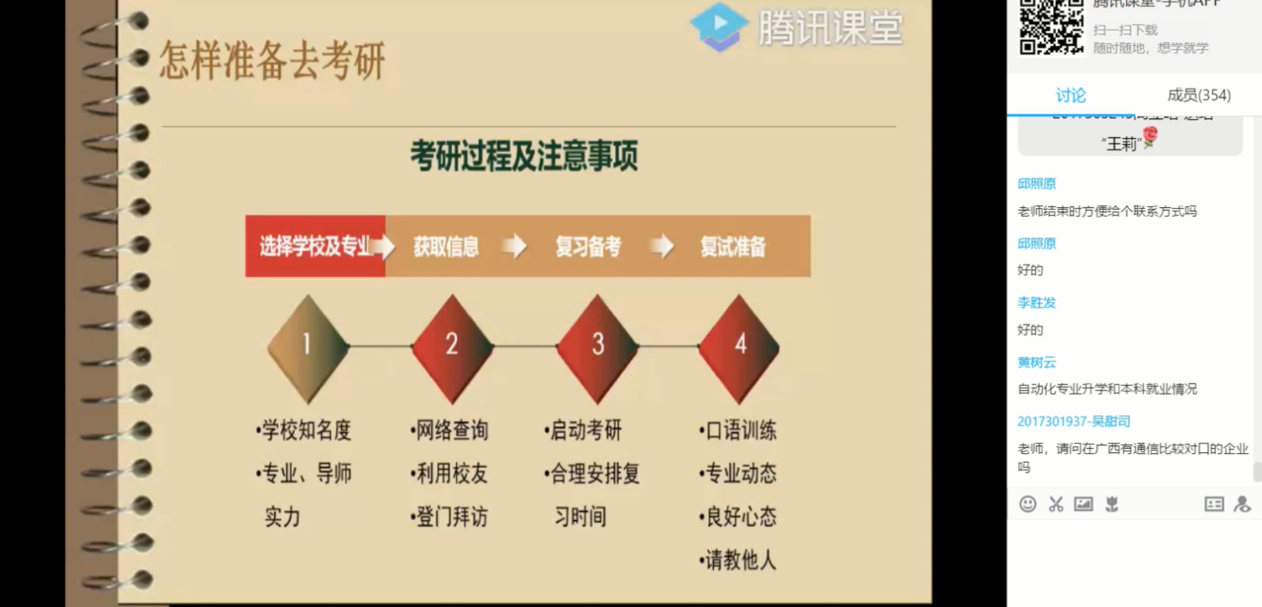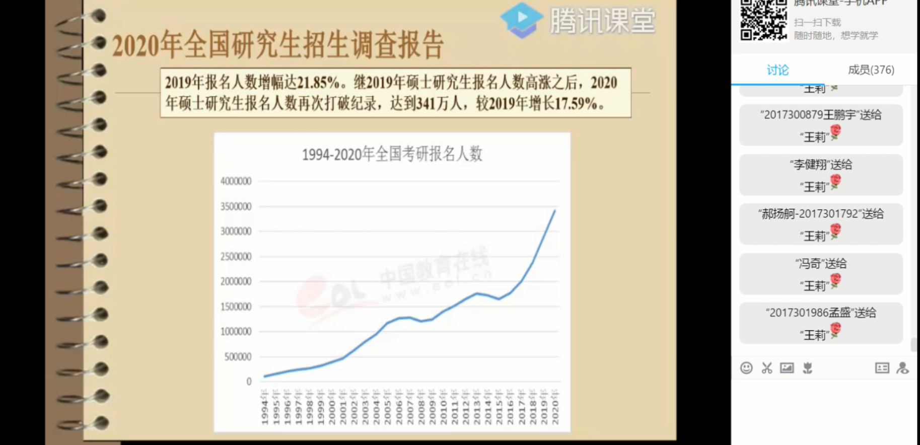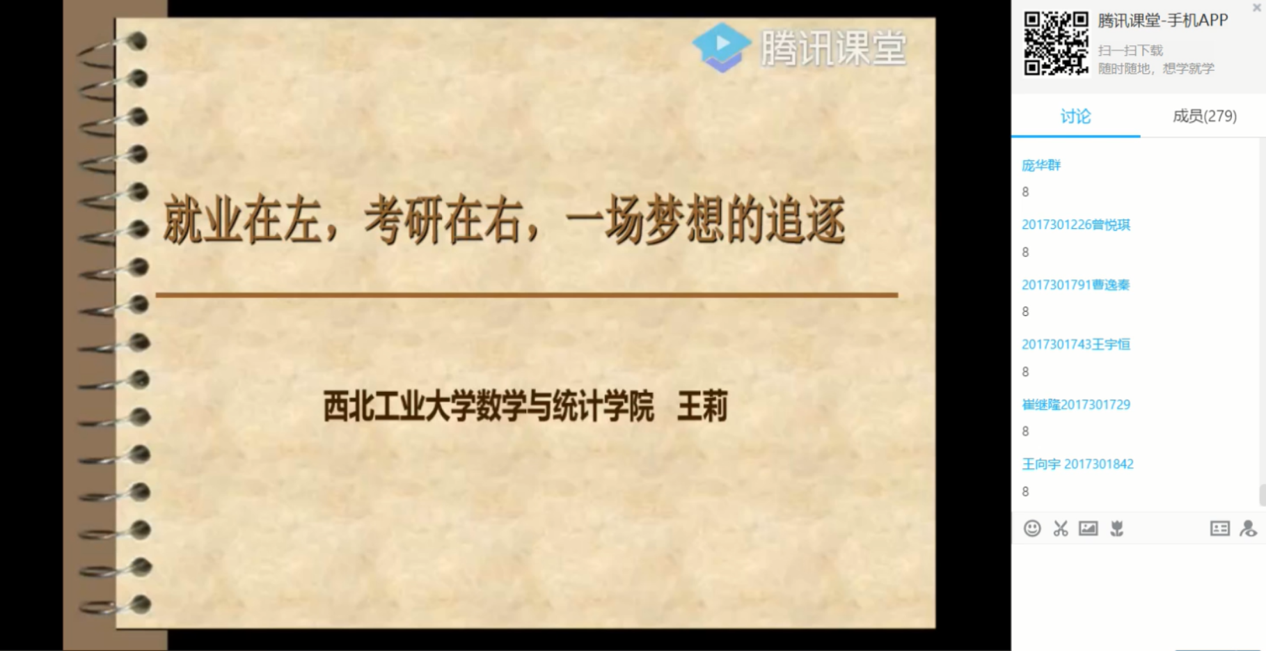 为了帮助2021届的同学们利用暑期积极调整,充分备战9月招聘黄金季。2020年8月1日晚7点,由员工职业发展指导服务中心主办,WilliamHill体育承办的第88期“莉莉老师聊就业”在腾讯课堂成功举办。活动邀请了深受工大学子喜爱的王莉老师为2017级本科生做了题为《就业在左,考研在右,一场梦想的追逐》的学业生涯专题辅导讲座。共有380余名同学聆听了王莉老师的精彩讲座。