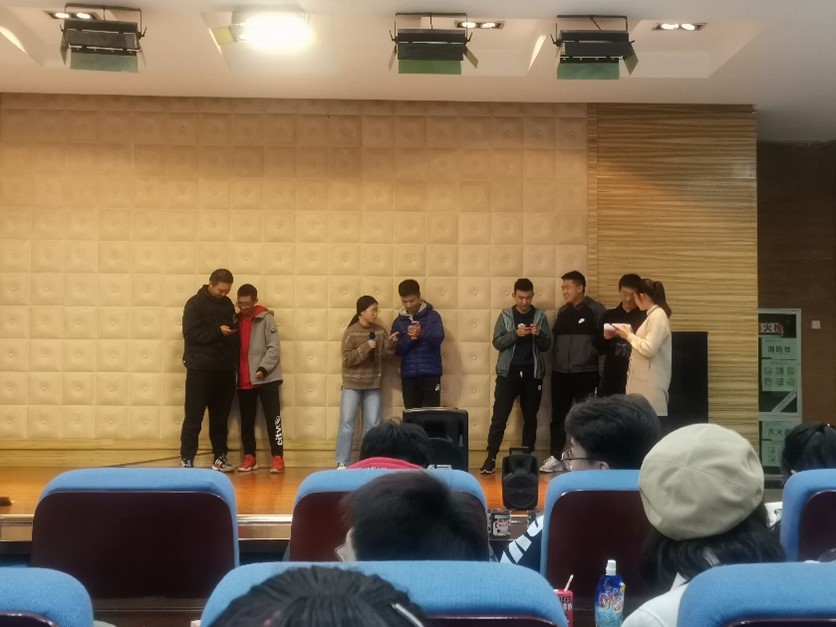 大家互相认识之后,就来到了有趣的游戏环节了。在主持人精心准备的“猜方言”游戏中,大家踊跃参与,来自五湖四海的小伙伴们踊跃上台,讲出了自己地区的方言,千奇百怪的发音让同学们好不乐哉。而在之后的“脑洞接龙”游戏,更是将现场气氛推至高潮。在这个游戏中,部长们成为了大家整蛊的对象,一个个脑洞大开的故事中,总少不了部长们的身影。这两个有趣的游戏,给见面会增添了独特的色彩,也成功使大家之间的陌生感彻底消失,玩得不亦乐乎。