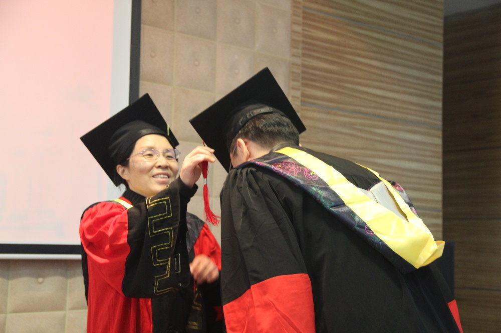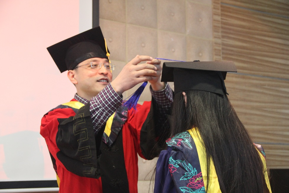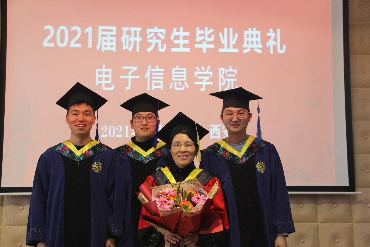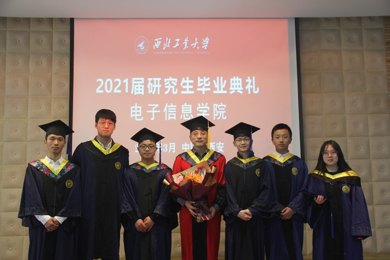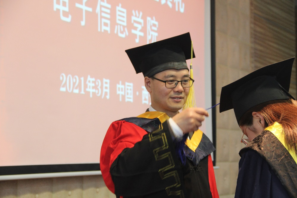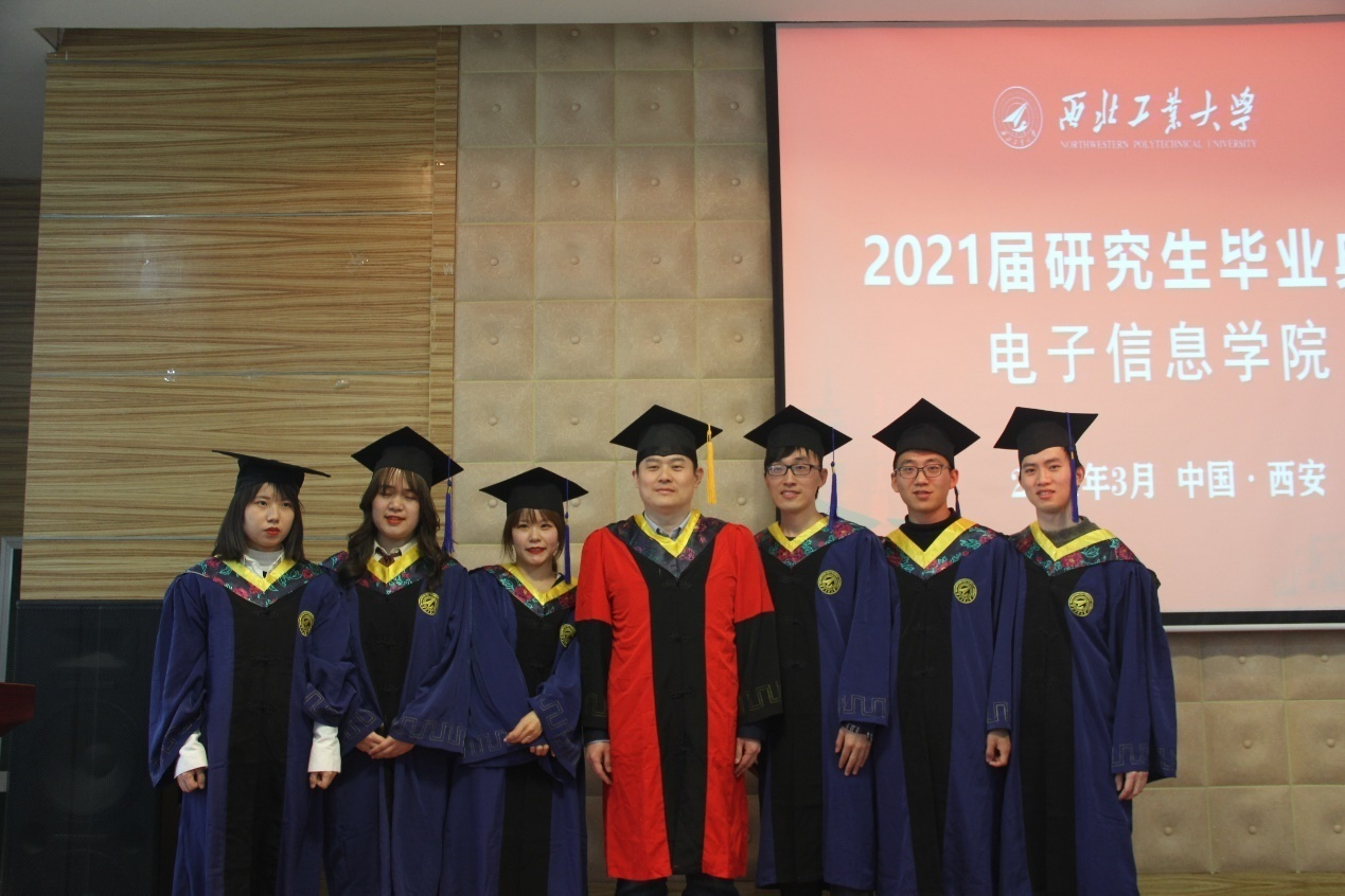 典礼最后,王伶、冯晓毅、周巍、张若南等四位老师为获得硕士学位的员工援正流苏,合影留念,为同学们在西工大的学习生活画上最圆满的句号。