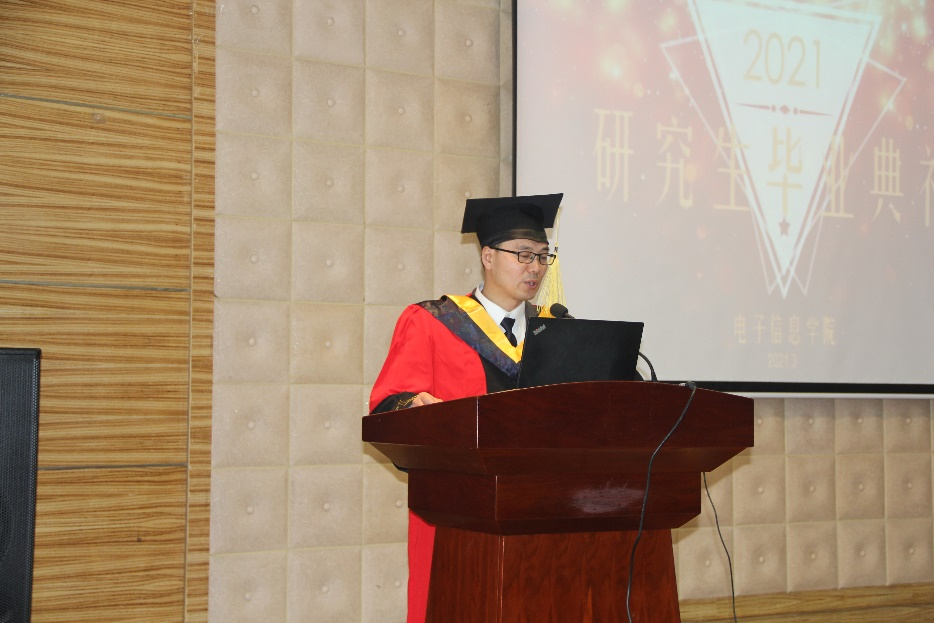 电子科学与技术专业2017级博士研究生范文作为毕业生代表发言。他表示,四年博士生涯的温柔记忆已成为青春芳华里的最美经历,必将激励每一位工大学子致力于服务国家、造福人民的家国大业。