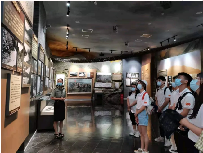 在讲解员的介绍下,实践队员对红军长征的历史有了深入的了解。中国工农红军从1934年10月到1936年10月之间进行的史无前例的长征历程。红军将士们不怕艰难险阻,不惜牺牲一切、以大无畏的革命英雄气概,血战湘江,突破乌江,四渡赤水,巧渡金沙江,强渡大渡河,飞夺泸定桥,翻雪山,过草地,突破天险腊子口,最终胜利到达陕北吴起镇。