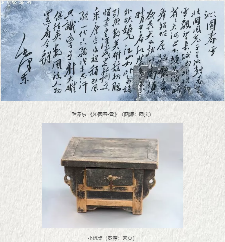 在延安革命纪念馆,陈列着一张表面漆木色相间,较为陈旧的小炕桌。伟大领袖毛泽东在这张小炕桌上绘制了红军东征抗日的蓝图,写下了气吞山河的名篇——《沁园春•雪》,以宏伟的气魄写出对于壮丽山河的赞美,充分表达了当代无产阶级英雄和革命人民的豪情壮志。实践队员王艺霏、张栩瑶在脱落的漆皮中感受到红军战士们的生活条件十分艰辛,更深深地感悟到小炕桌中所蕴含的不畏苦难、不怕牺牲,为国家和人民谋幸福的延安精神!