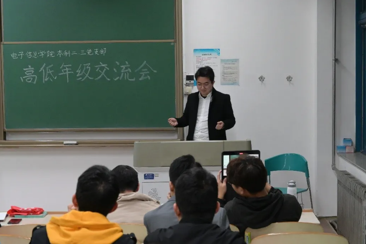 本科三党支部副书记刘崇辉同志、本科第二党支部组织委员王晓菲同志共同组织了此次交流会。交流会当晚,王子翼等5位同学对其较为熟悉的问题进行了生动的讲解,学弟学妹们也积极提问。