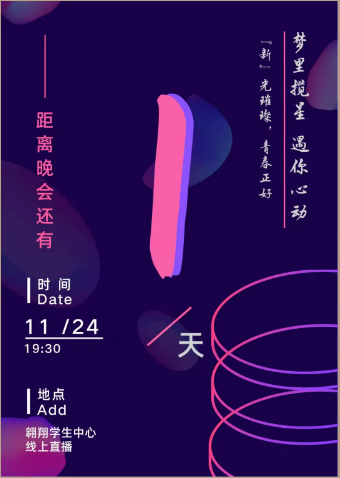 NPUers,你是否因为初冬时刻的寒冷瑟瑟发抖,你是否因为枯燥的学习无精打采,快来欣赏一场激情四射的迎新晚会吧!就在明晚!在这里,炫酷的音乐,动感的舞姿,还有更多丰富多彩的艺术形式,足以温暖每个人的内心,告别emo,从这场热情的晚会开始!这里是你我有缘相识齐聚一堂的艺术圣地,更是你我相知相认永生难忘的美好良宵。