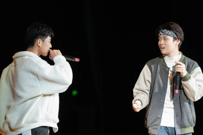 说唱《Slash》、舞蹈《Young Boss》、歌曲《挥着翅膀的女孩》、走秀《Private Party》,四大精彩节目接连袭来。表演者分别来自九弦音Rap队、Babypower街舞社、九弦音声乐队、九弦音T-show队+Rap队。现场高潮迭至,没有人可以在此刻冷静。美丽、优雅、帅气、潇洒……似乎再多的赞美之词也无法还原出当时的精彩。小姐姐与小哥哥同台,轻柔起势与炫动展演共存,勾画出让人久久回味的心动图景。
