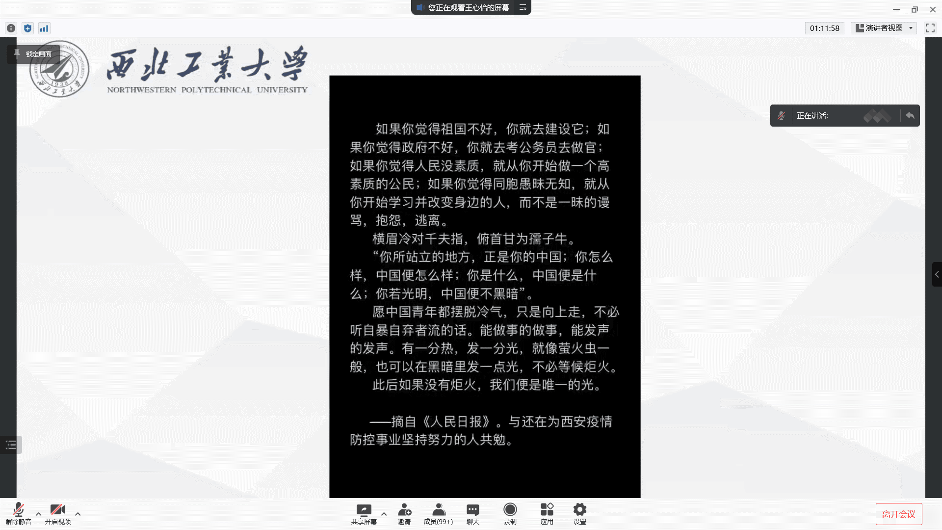 第四部分,开展WilliamHill体育第九期“思政小课堂”活动:即以疫情期间的自身经历为基础用不同形式来表达自身的所思所想所感所悟。