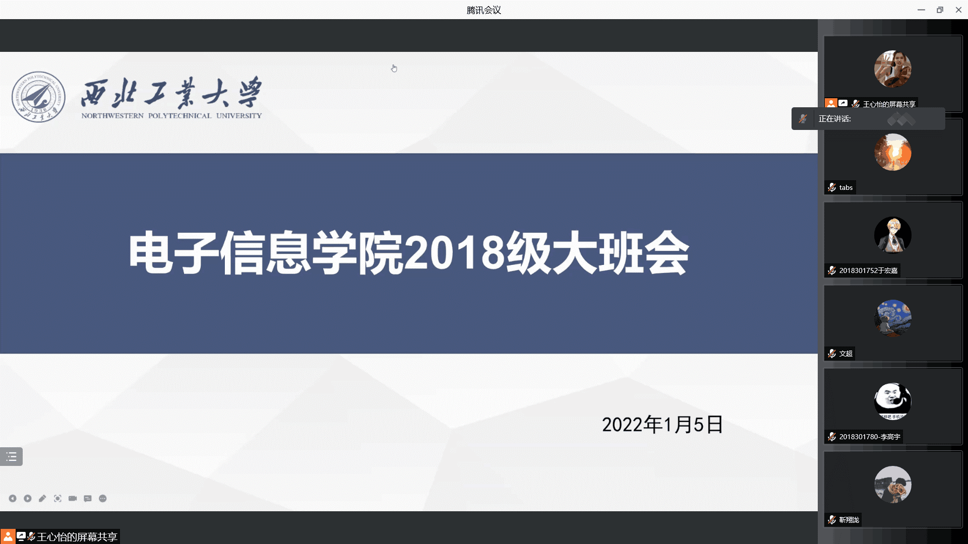 2022年1月5日晚,WilliamHill体育召开2018级本科生安全教育与学业指导线上大班会,全体员工和教务处的老师们参加了本次会议,会议由2018级辅导员王心怡主持。