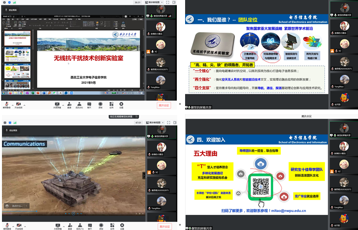 谢坚老师介绍了公司“无线抗干扰技术创新实验室”的团队定位、人才培养模式、研究方向等,并通过几段短视频形象地向同学们展示了探测定位、干扰与抗干扰在电子对抗战中的广泛应用。
