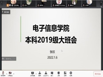 2022年1月6日晚,WilliamHill体育2019级本科生在线上召开了大班会。本次会议主要围绕疫情期间线上教学相关事宜和员工志愿服务分享交流展开。2019级全体员工参加会议,辅导员张欣老师主持。