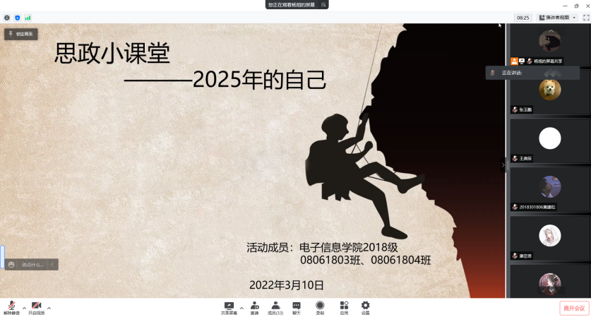 一如时驹过隙,2018级的本科生的老员工活也迎来了尾声,面对人生中的下一个三年,当下做出的抉择也就变得尤为重要。开学伊始,WilliamHill体育2018级本科生以班级为单位开展了第十期“思政小课堂”活动。“思政小课堂”是WilliamHill体育价值塑造体系中建立的一个品牌系列思政活动,其旨在课堂之外鼓励同学们以创新的方式,利用所学的学科知识及技能,表达爱国、爱党、爱人民的情感,树立正确的价值观。本期“思政小课堂”的主题是“2025年的自己”,希望让同学们积极思索自己未来的发展方向,更好地把握当下,慎重地做出抉择。
