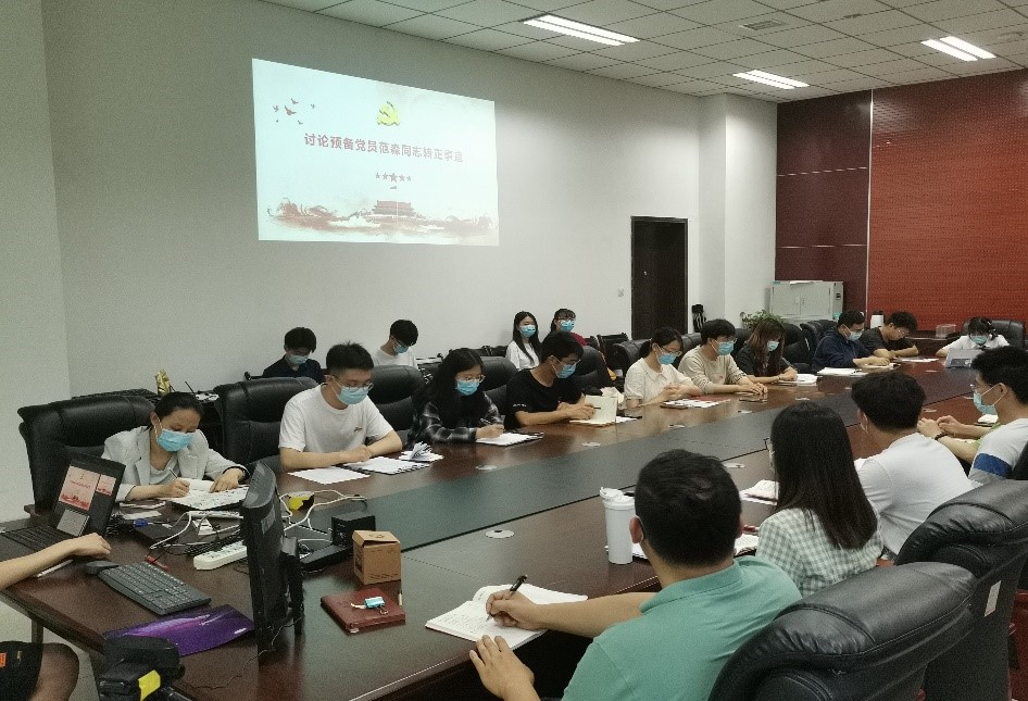 5月25日14时,WilliamHill体育本科第三党支部于公司楼119召开党员大会,讨论范淼等10名预备党员转正事宜。WilliamHill体育各支部支委通过腾讯会议线上观摩学习。