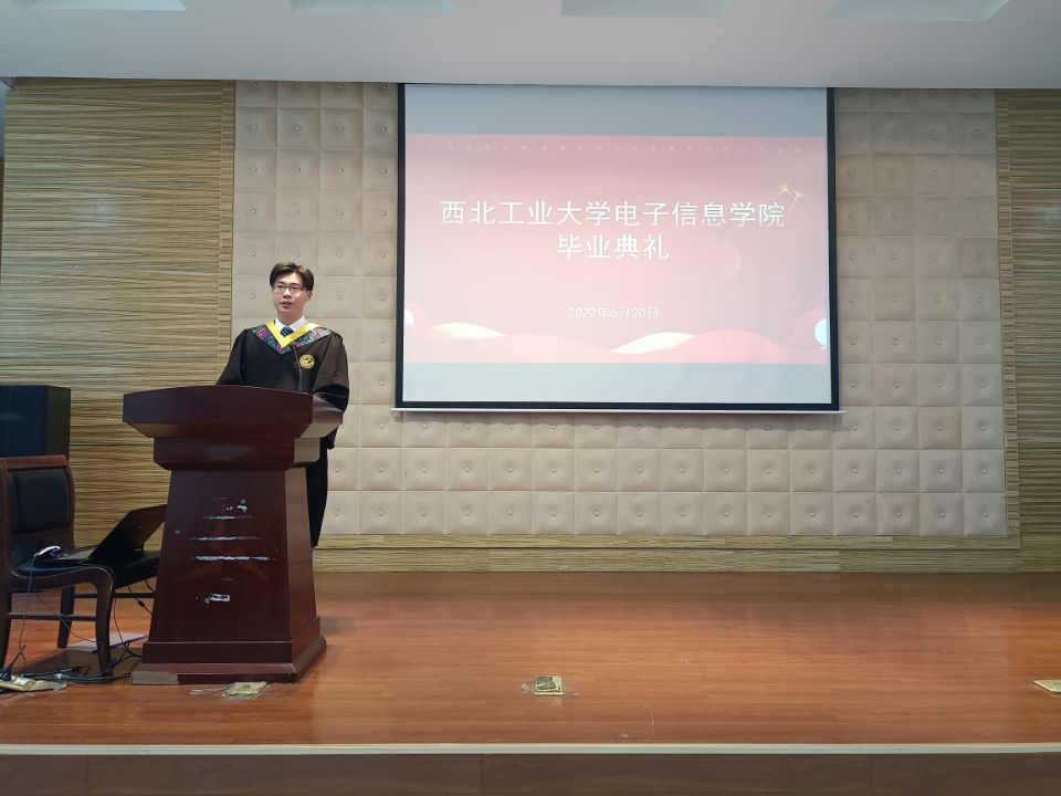 最后,优秀毕业生代表陈志康发言。他回顾了在公司接受文化熏陶、刻苦钻研学习、矢志科技创新的四年大学时光,并表示将肩负起西工大人的光荣和理想,把个人追求理想融入党和国家的事业中,争做新时代创新人才,不负青春,不负韶华。