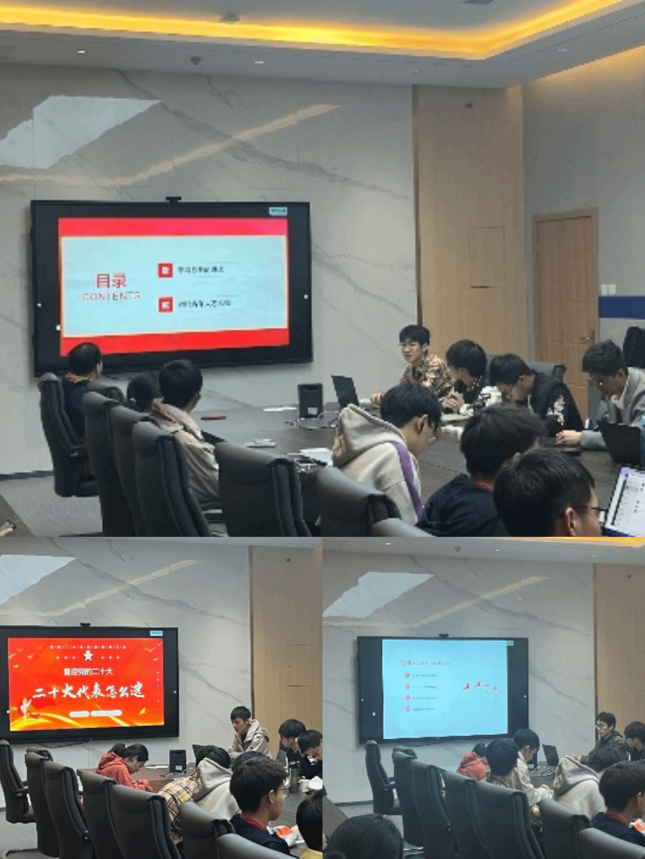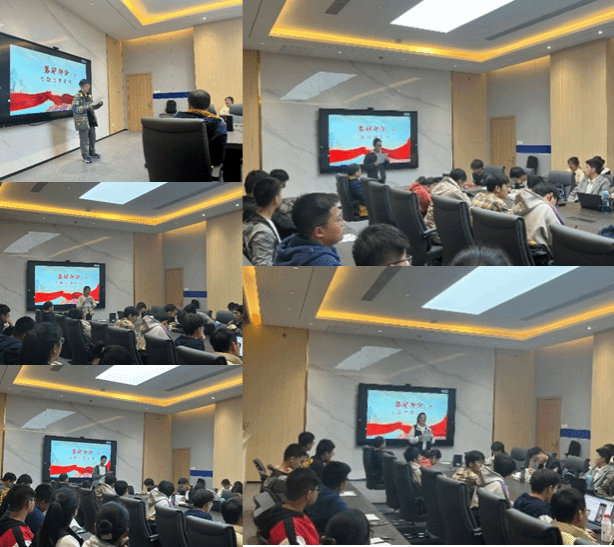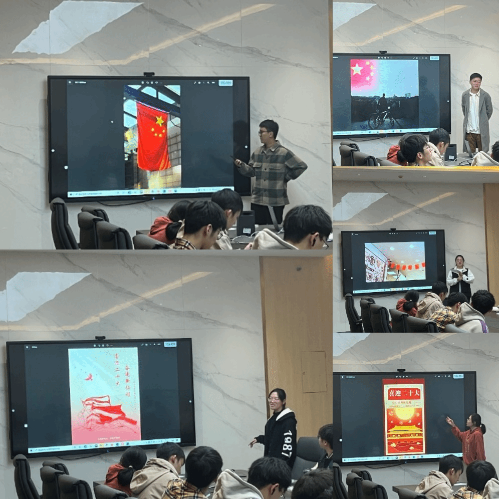 接下来,郝俊宇、许彭湃、朱文韬三名党员同志以“喜迎二十大,奋斗工大人”为主题为支部全体成员开展党课。