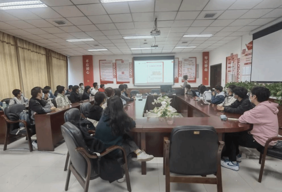 随后,主持人肖宇杰向团员们细致入微地介绍了中国共产党全国代表大会的历史背景、意义及作用,并重点介绍了此次党的二十大的大会主题和主要内容,带领团员们学习习近平总书记讲话精神。