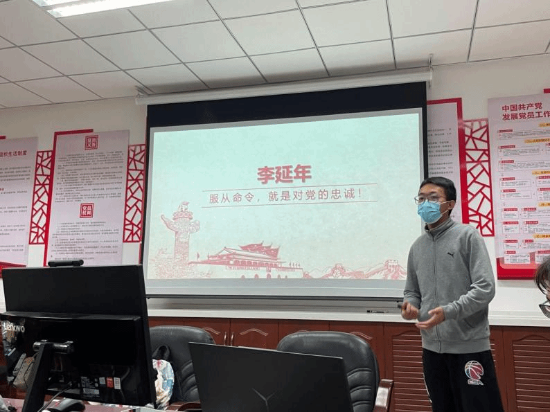 接着,电子信息公司08062110支部团员高博文带领大家回顾了李延年同志的英雄往事,展现了李延年对党绝对忠诚、为国舍命奋斗的战斗英雄本色,表示希望大家崇敬英雄、脚踏实地,努力成为共和国新世纪的英雄。