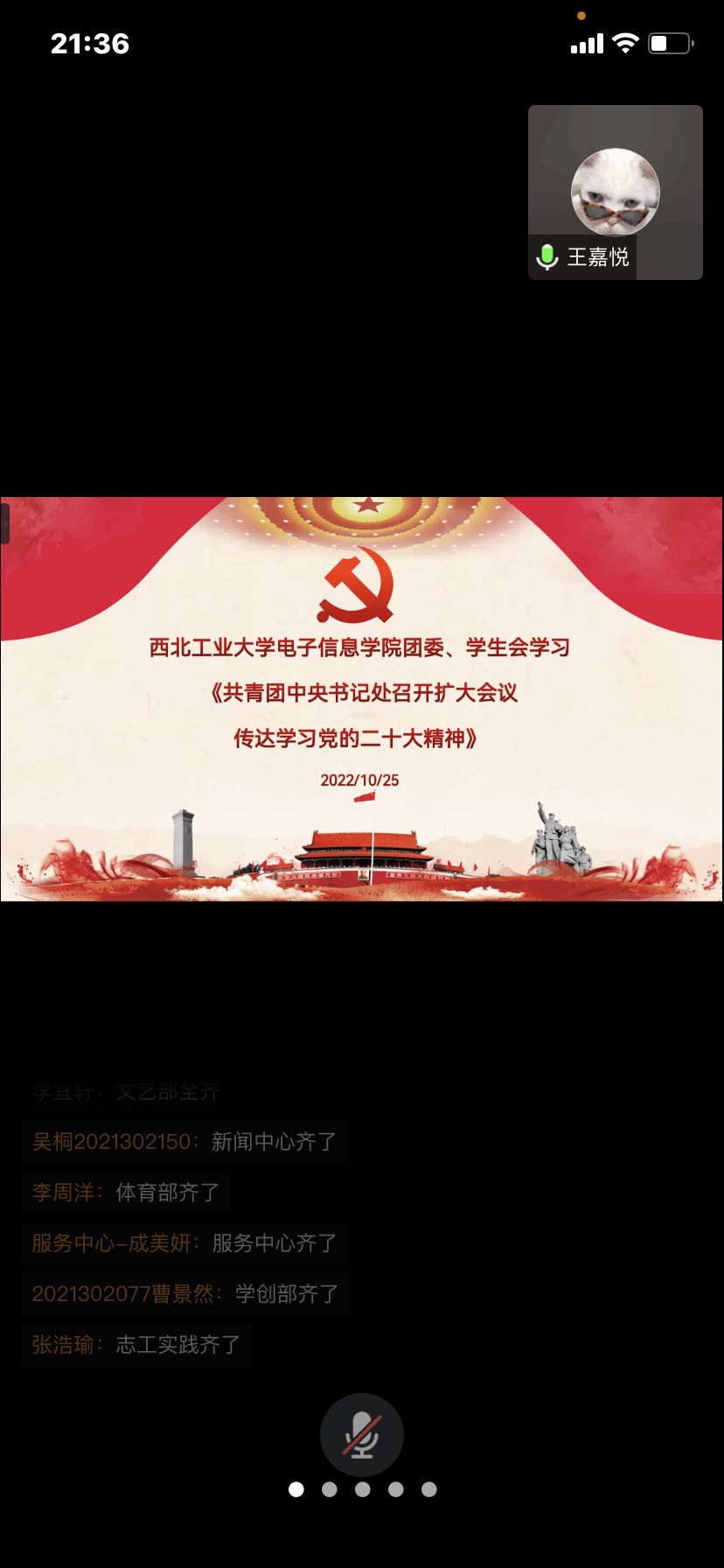 10月25日晚,WilliamHill体育团委、员工会召开线上专题会议,学习《共青团中央书记处召开扩大会议传达学习党的二十大精神》,团委书记王嘉悦参加会议并担任领学人,主席团及全体负责人参加学习。会议由执行主席祝嘉骏主持。