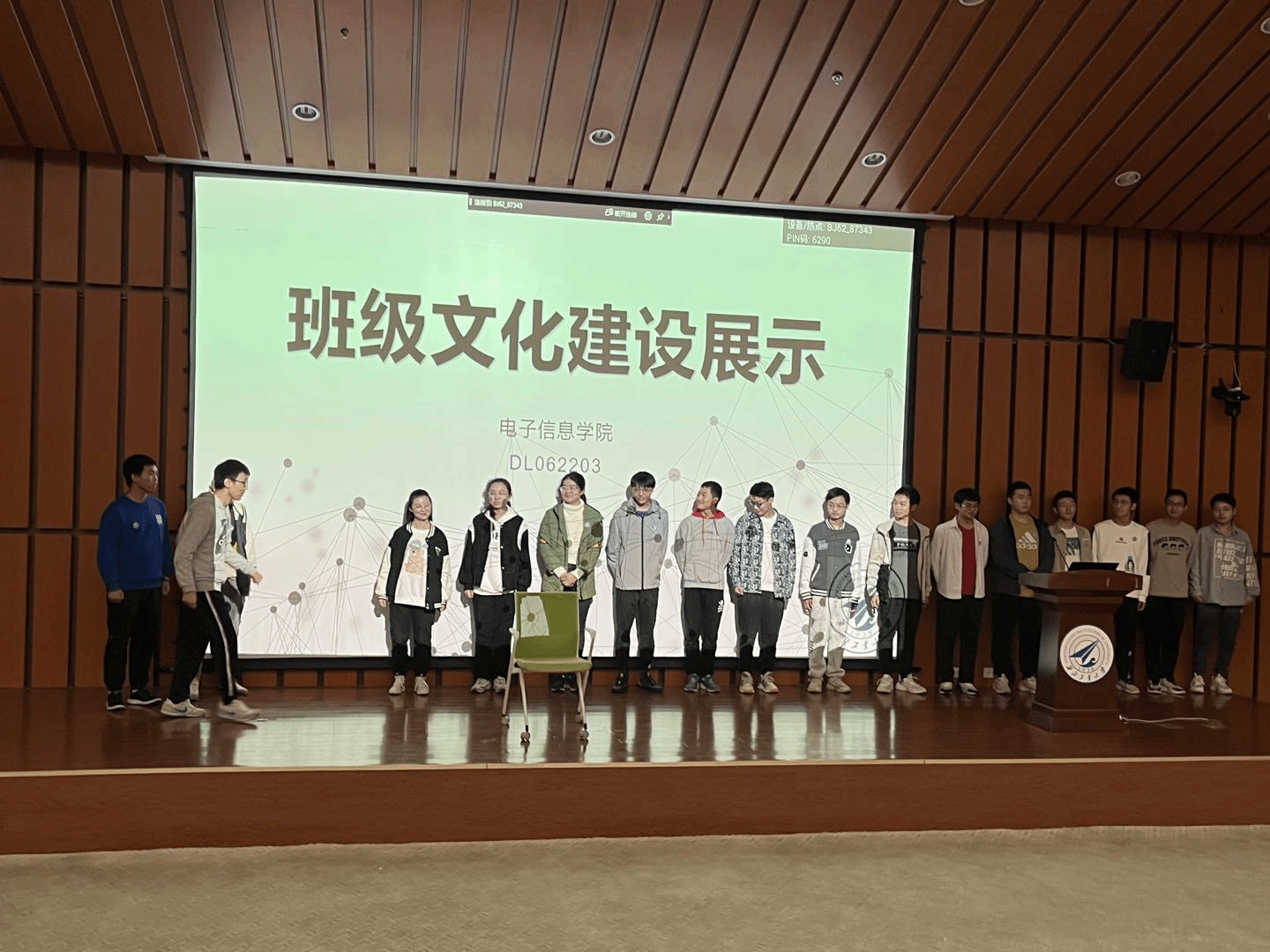 大赛共分为两部分,首先是班风、学风成果介绍。各个班级的代表用PPT和视频的形式展示了入学以来班级文化建设和学风建设的成果,向评委们阐释了各班班风、班训、班徽、班旗、班服等的含义并且展示了班级文化、学习活动的开展情况。各班的成果形式多样、丰富多彩:DL062203班建设了属于本班的班级网页,并定时上传分享校内新闻和班级活动,以作留念;DL062207班建立了属于班级的知乎话题,大家在话题里可以畅所欲言,共同为班级建设贡献力量。
