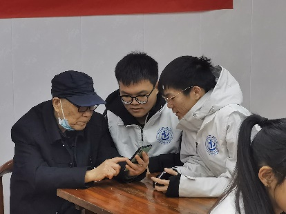 接着,队员们为社区老人进行了防范电信诈骗的宣传讲解。结合案例,向老人普及了电信诈骗常见的七种套路,并和社区老人一同学习防范电信诈骗口诀,帮助老人下载国家反诈APP。随后,志愿者们还为社区老人介绍了智能手机的使用方法,包括添加联系人以及微信、支付宝等软件的使用;在提问互动环节,志愿者们以“一对一”的形式帮助老人学习使用智能手机的一些其他重要功能,和老人亲切交流,亲如一家。