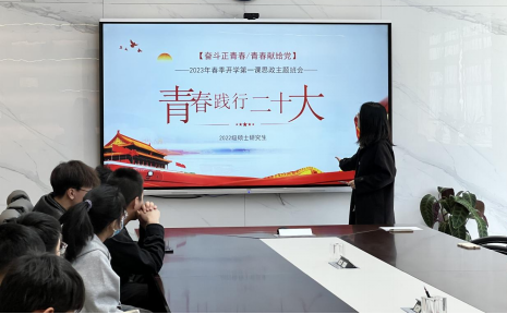 为引导员工认真学习党的二十大精神,加强研究生干部队伍建设,提升员工干部理论素养,2023年3月15日,2022级硕士研究生以“青春践行二十大”为主题,在公司楼159会议室召开了新学期第一次思政主题班委会,辅导员许茜与兼职辅导员陈爽出席本次会议。
