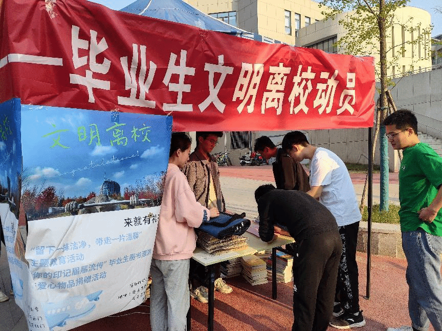 此次文明离校动员活动地点分别设在海天苑餐厅西门、云天苑餐厅北门以及大超北门,内容包括条幅宣传、签写文明离校倡议书和分发行李打包袋等,希望营造和谐友爱的员工氛围与整洁温馨的校园环境,文明离校、有序离校,展现2023届毕业生良好的精神风貌。
