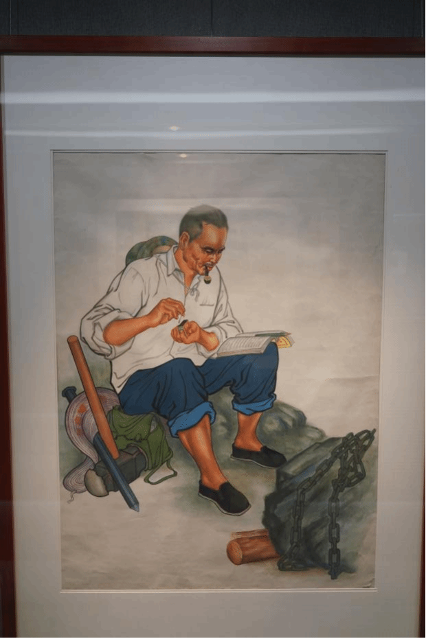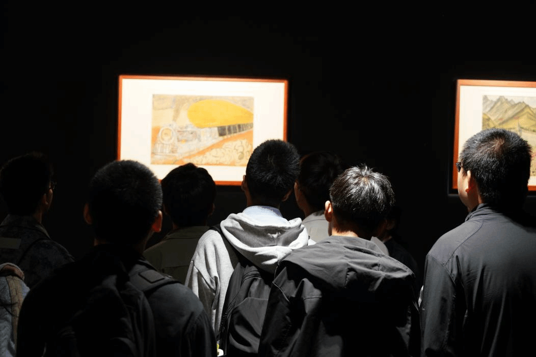前任博物馆馆长雒志俭老师带领同学们走上二楼,对于一些画作进行更深入的讲解。他说:“每个人都可以画画,都可以成为艺术家,只是很多人没有自信。”他讲了他六岁开始学画画,后来迫于生计开始学木工,他是如何讲自己画画的功夫与木工结合,又是如何将自己木工的经验用于艺术创作。在他的观念中,每个人的人生经历,都会塑造他对于生活的理解和对于美的感受,这些是“不能让别人教的,必须是你自己的”。