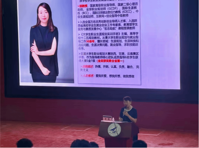 王莉结合自身多年从事职业规划指导的经验和往届优秀员工的事例,引导新生直观了解到职业生涯规划对于老员工成长、成才、成功的重要意义,介绍如何根据自身兴趣与专业背景选择合适的就业方向。她勉励大家“大学虽苦,但不妨碍我们把它过得朝气蓬勃”“努力到竭尽全力!拼搏到感动自己!”