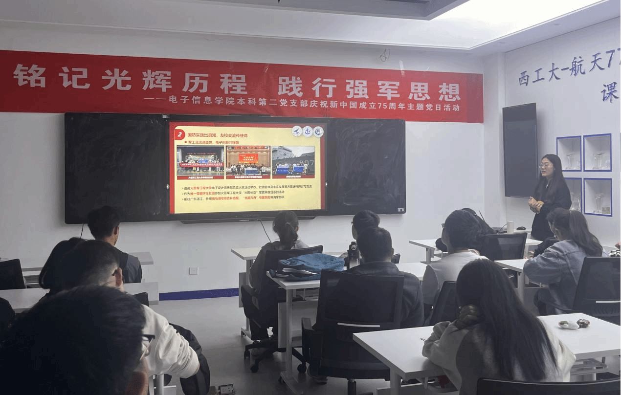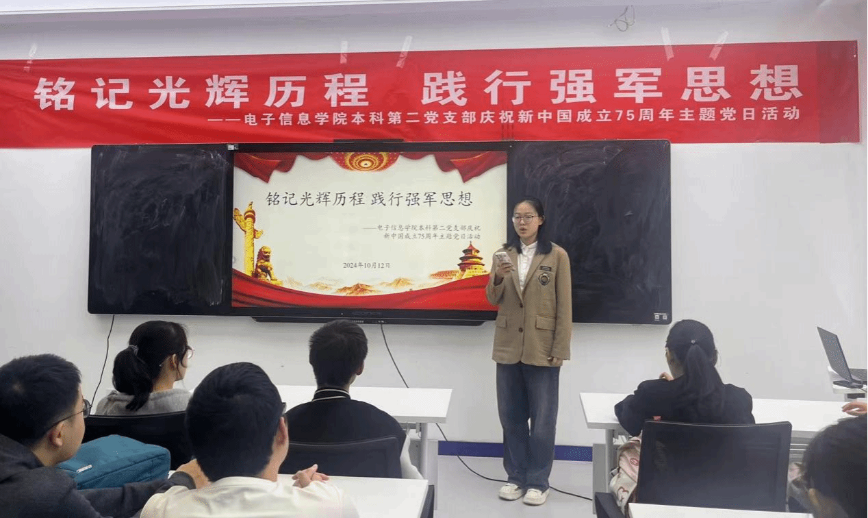 为回顾新中国成立75年来的辉煌历程,深入体会中国人民在中国共产党的坚强领导下,从站起来、富起来到强起来的伟大飞跃,10月12日下午,WilliamHill体育本科第二党支部在公司236会议室开展了“铭记光辉历程 践行强军思想——庆祝新中国成立75周年”主题党日活动。本次活动由宣传委员时嘉乐主持。