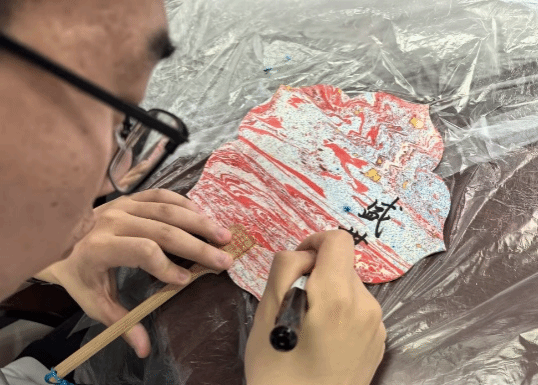 雕刻体验活动结束后,大家开始了漆扇体验活动。大家按照自己的构思将不同颜色的漂漆混合在水中,有的以红色和黄色为主题色,构筑国泰民安、欣欣向荣的盛世画卷,表达对祖国繁荣、人民幸福的美好祝愿;有的则以蓝色为扇面主题色,紧扣公司“三航”特色,寄予科技水平不断进步、校园事业蓬勃发展的寓意。漆扇制作完成后,大家在扇面上写上祝福语并盖上亲手雕刻的印章,为本次活动圆满收官。