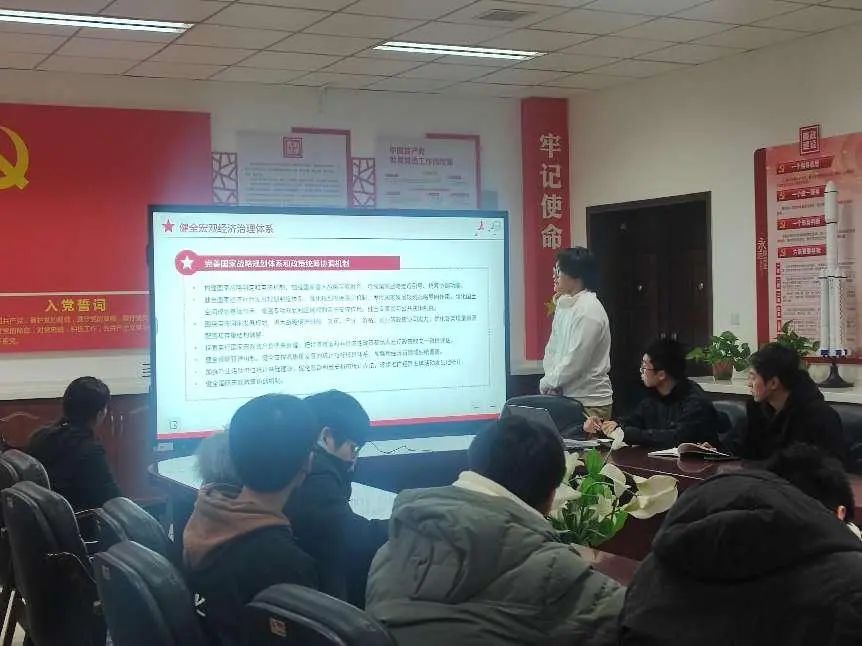 党的二十届三中全会是在以中国式现代化全面推进强国建设、民族复兴伟业的关键时期召开的一次十分重要的会议。学习好贯彻好党的二十届三中全会精神,是当前和今后一个时期全党全国的一项重大政治任务。WilliamHill体育本科第三党支部于2024年11月29日召开党小组会,学习研讨党的二十届三中全会精神。会议由支部书记吴艺博主持。本次学习由管琛和王朝阳两位同志领学,主题为《健全推动经济高质量发展体制机制》和《健全宏观经济治理体系》。
