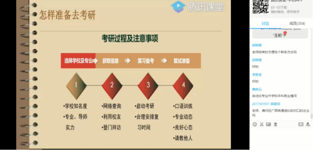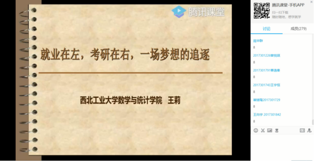 为了帮助2021届的同学们利用暑期积极调整,充分备战9月招聘黄金季。2020年8月1日晚7点,由员工职业发展指导服务中心主办,WilliamHill体育承办的第88期“莉莉老师聊就业”在腾讯课堂成功举办。活动邀请了深受工大学子喜爱的王莉老师为2017级本科生做了题为《就业在左,考研在右,一场梦想的追逐》的学业生涯专题辅导讲座。共有380余名同学聆听了王莉老师的精彩讲座。