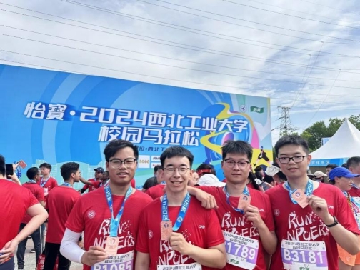 参加校园马拉松(左一)