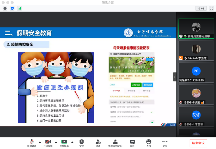 本硕博各年级辅导员先后通过线上的方式召开了大班会,开展暑期员工安全教育,内容包括:员工离校前彻底清理宿舍卫生并检查宿舍安全,关好门窗、关闭房间电源,彻底消除安全隐患;假期内外出要注意防疫安全、人生安全、财产安全、交通安全,避免前往中高风险区域,不参与大规模集会活动,做好安全防护工作;留校员工不得随意出入公司,有事外出需告知辅导员并请假,返校需销假;公司对留校员工坚持疫情“日报告、零报告”制度,每天对留校员工进行全面精细排查;注意网络安全与文明,禁止使用网络暴力,维护网络环境稳定。