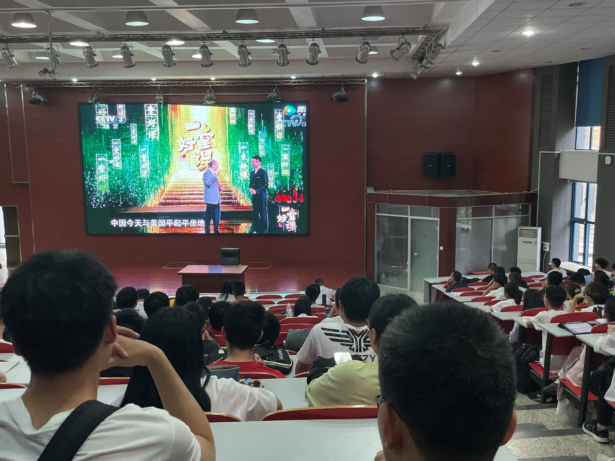 本次课程的主讲人是国防大学教授、中国人民解放军少将金一南老师。金一南从2015年3月基辛格先生访华切入,分别讲述了中国近代“百年苦难”和中国“百年辉煌”,通过中国共产党的诞生、中国革命史,以及今日中国制造的强大、华为5G技术领跑世界等事例,启发观者为何爱国、何以爱国。授课中,金一南还以亲身经历鼓励同学们“做难事必有所得”,要追求卓越,追求极致。
