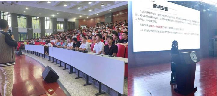 会议开始,校教务处仇梦一老师从为什么选课、选什么课、怎么选课三个方面为2021级同员工动地讲解了选课流程、选课技巧以及合理安排课程,提醒同学们提前做好课程规划,又重点介绍了往年员工选课过程中出现的问题,并对2021级新版培养方案中数学类和语言类课程的修读进行了解说。