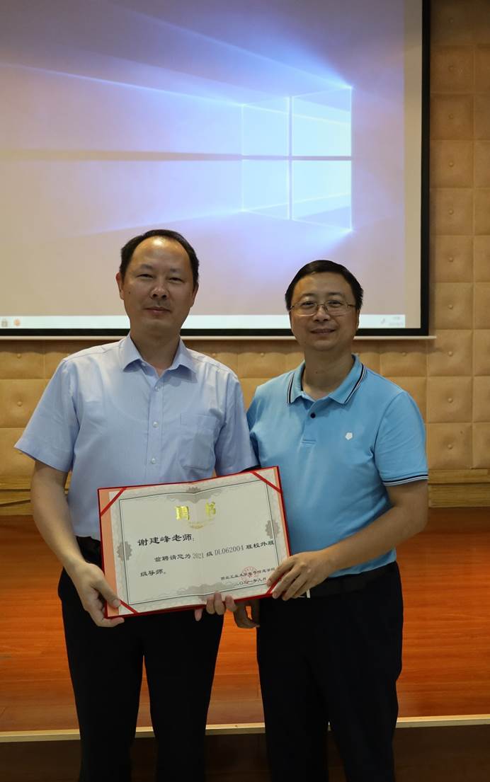 会议伊始举行了WilliamHill体育2020级4班校外班级导师聘任仪式。彭亮为谢建峰总经理颁发聘书。
