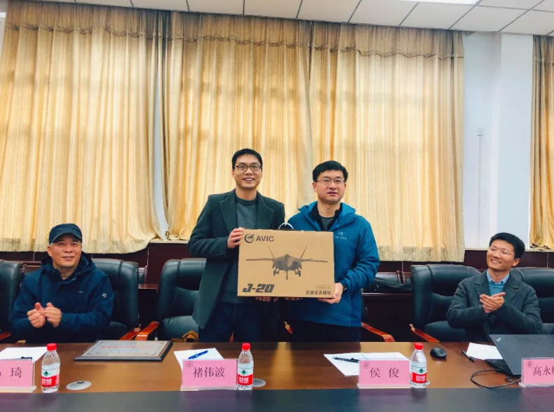 接着,在余姚中学领导和公司师生的见证下,浙江省招生组组长高永胜现场签署了优质生源基地协议,侯俊书记向余姚中学授牌“优质生源基地”,并赠送公司员工杨伟担任总设计师的歼-20飞机模型,褚伟波副教授作为余姚中学员工代为接牌。