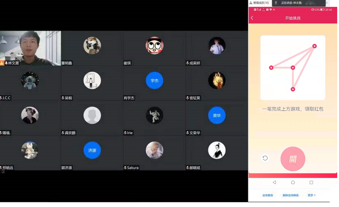 林文晟老师班级,同学们通过线上语音,互道新年快乐,还通过一笔画红包绘制了西工大标志性的飞机图案,祝福公司在新的一年里发展更好。