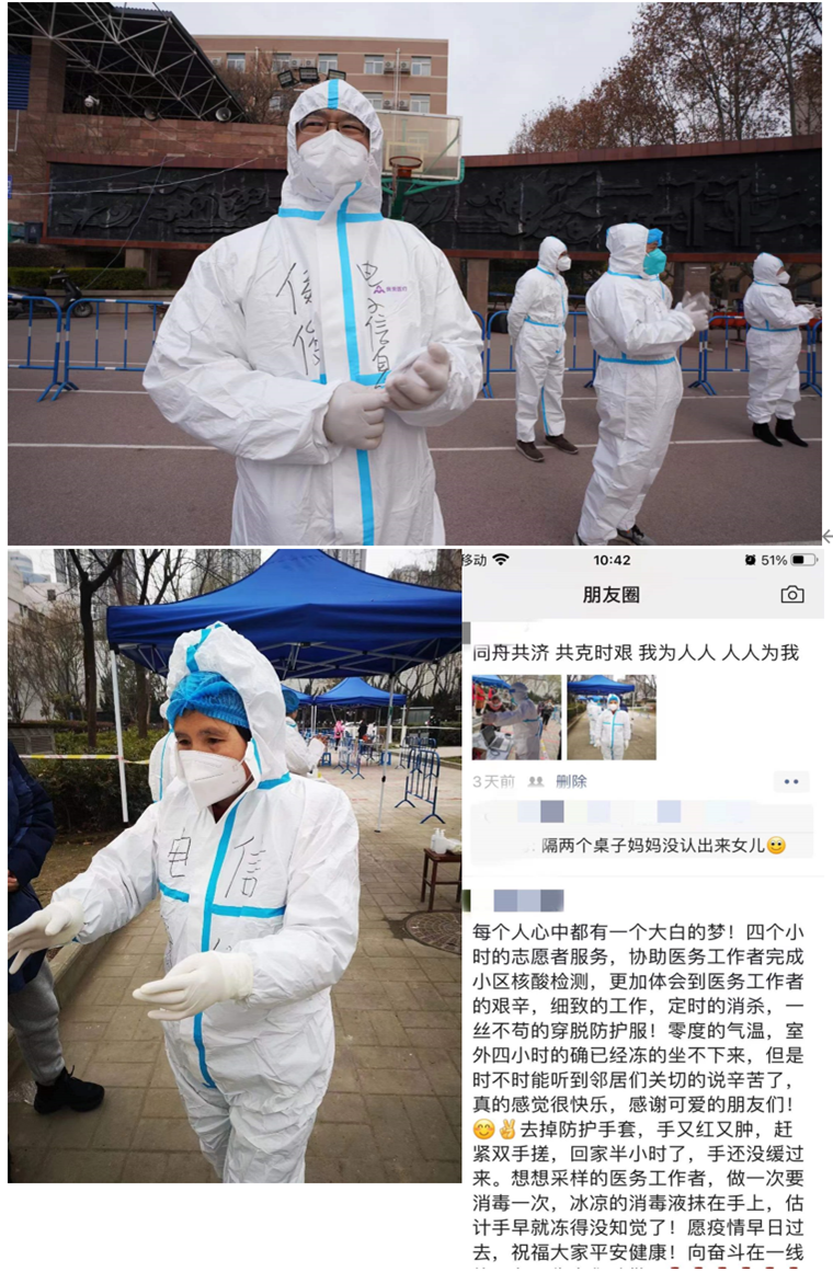 这些天,在志愿者群里,最大的感受就是大家积极踊跃的工作态度,看到WilliamHill体育的教师在群里发出的信息:“给我留一个名额”、“要为疫情出一份力,志愿者的名额太难了,要用抢的,稍晚几分钟,名额就满了”。此时的我们,心里没有惧怕,反而是像一股麻绳儿,紧紧拧在一起,一句简单的“工大加油”、“西安加油”,蕴藏每个人此时积攒许久的情感。每一个字,在那一刻如此动人,浇灌着我们的心底,为按下暂停键的西安点亮了一盏盏温暖的明灯,这种舍己的大爱,怎么赞都不为过!