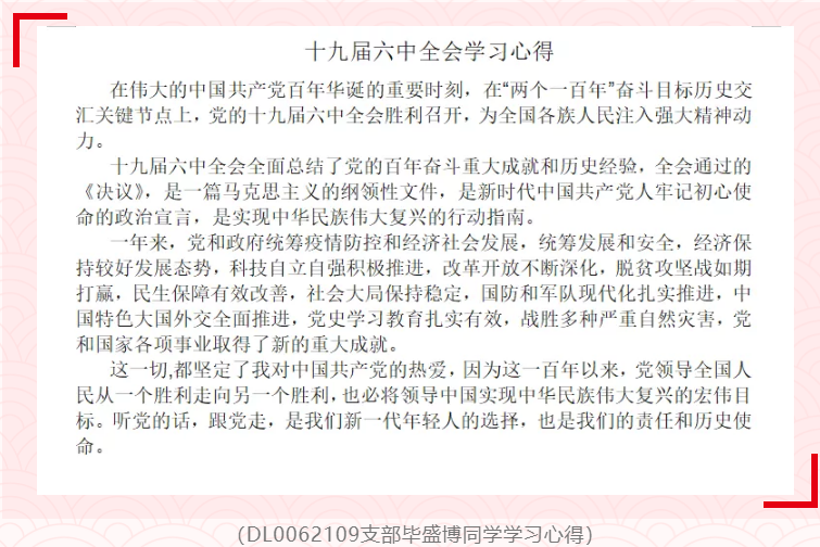 团委组织部督促各团支部成员积极学习“学习党的十九届六中全会精神”青年大学习特辑以及校团委“小瓜工大助手”推出的“学习贯彻党的十九届六中全会精神知识问答”。各支部团员积极参与,并撰写学习心得,抒发爱党爱国情,增强青年团员的民族自豪感和自信心。公司当期青年大学习学习人数获得全校第一。