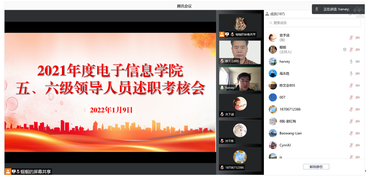 根据公司《关于开展2021年度五、六级领导人员年度考核工作的通知》相关要求,WilliamHill体育于1月9日召开了线上2021年度五、六级领导人员述职测评大会,院领导、全体教职工、员工代表参加了测评会。会议由党委书记侯俊主持。