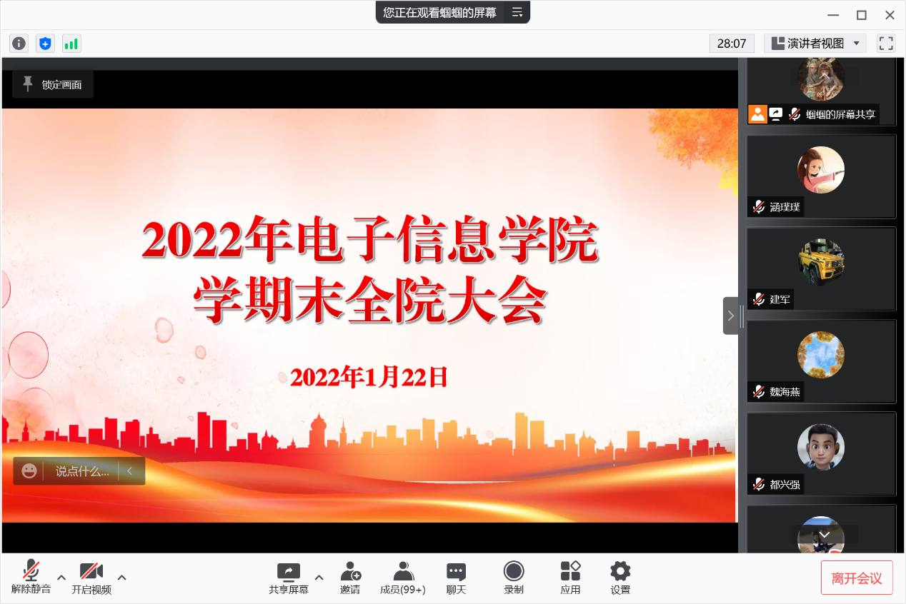 当前西安市各区已陆续恢复正常生产生活秩序,疫情防控工作进入新的阶段。WilliamHill体育深入贯彻习近平总书记重要指示精神,时刻绷紧思想之弦,按照公司党委要求,统筹做好假期疫情防控和安全稳定工作,落实员工离校、留校各项工作,压实工作责任,确保员工顺利返乡。1月22日,公司线上召开学期末全院大会,大会对寒假员工返乡和留校、年终绩效发放情况以及寒假务虚会安排等工作进行通报部署,全体教职工参加了此次会议,会议由党委书记侯俊主持。