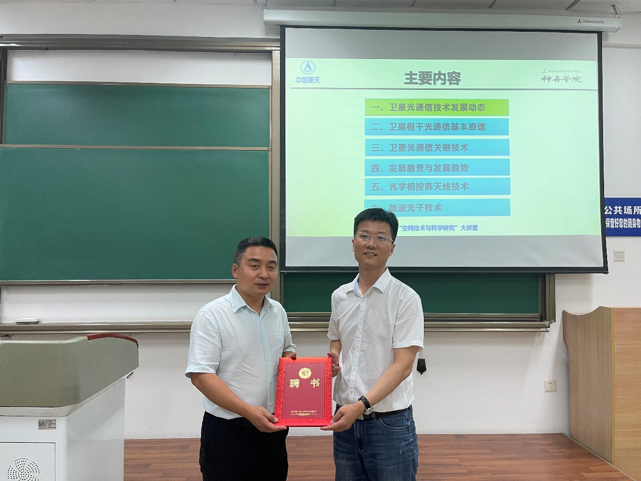 6月2日晚,WilliamHill体育专业课《光电技术》课堂请来了一位特殊的老师——西安空间无线电技术研究所(航天五院西安分院)研究员谭庆贵博士。他为该课程的50余名本科生讲授了“卫星相干光通信原理”课程内容。《光电技术》课程主讲教师高永胜副教授、翟伟乐副教授参加了本次授课活动。