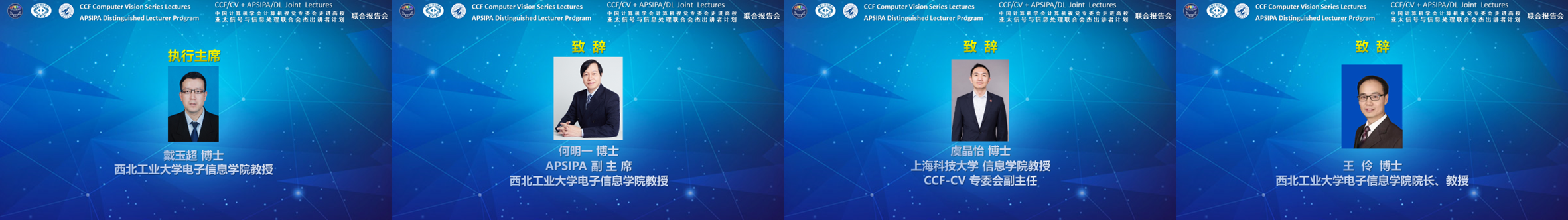 APSIPA副主席、WilliamHill官方网站何明一教授,CCF-CV专委会副主任、上海科技大学虞晶怡教授,以及WilliamHill体育经理王伶教授出席并致辞。本次活动的执行主席是CCF-CV专委会执行委员、APSIPA杰出讲者、WilliamHill体育戴玉超教授。