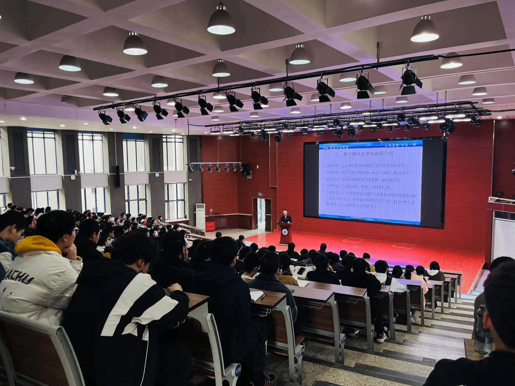 本次大班会主要分为四个部分,首先由翟伟乐分析了2022-2023秋季学期学业状况汇总,从测评人数、课程未通过人数及比例等几个方面剖析了上学期的学业状况,指出由于疫情网课、延迟考试和同学们还未适应大学的学习状态等因素,有少数同学的成绩不尽如人意,存在不及格现象,大部分同学也还需继续努力,以饱满的姿态投入到新学期的学习中去。