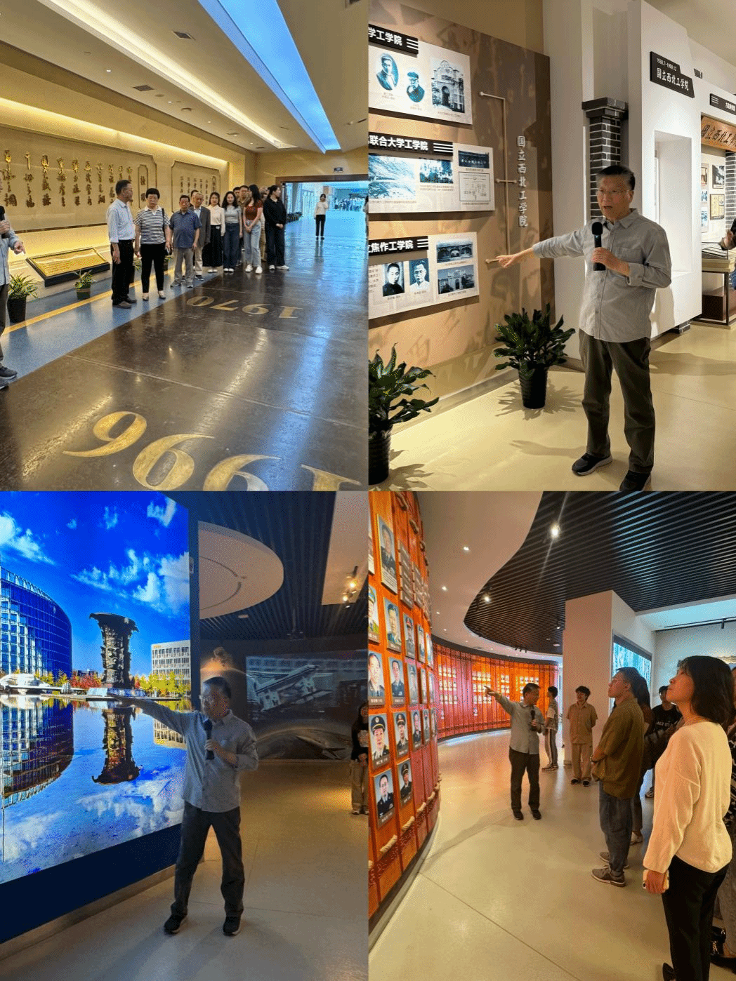 前行不忘来时路。活动伊始,10余位老同志与40多名员工党员一同走进长安校区校史馆,退休南五党支部书记黄迪民教授饱含深情的介绍了公司的发展历程。从校风校训讲到西工大现象,一行人仿佛置身于历史的长河中。同学们目睹了杰出员工的风采,脸上流露出敬仰与自豪之情。员工们的优秀事迹,鼓舞了同学们奋发向上、刻苦学习的热情,更使同学们明确了自己肩负的责任与努力的方向,与前辈学长们共同书写工大的成就与辉煌。